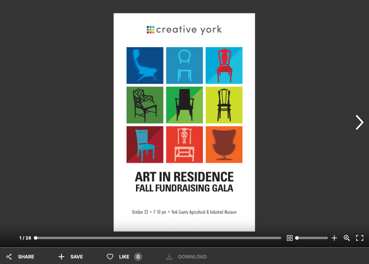 Creative York’s popular annual fundraising event made its return in 2022 after a two-year hiatus. The focal point of the evening was a fast-paced “Chair-ity Auction” where unique seats crafted by local artists went home with the highest bidder. To highlight the auction, the client requested promotional materials with a ‘chair theme.’
